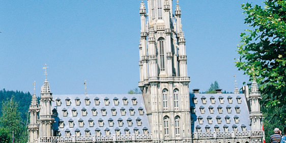 The market square in Brussels is one of the most impressive examples of town square architecture in Europe with its unique collection of secular buildings of the Italian Baroque and the Flemish Late Gothic style. The town hall dominates the square with its 89 m high tower and is one of the best-preserved and most beautiful secular Gothic buildings in existence. If you climb the 400 steps to the top of the tower, you will have a wonderful view over the whole city. When French troops under Louis XIV bombarded the town they destroyed almost all the guild houses but miraculously the town hall remained almost undamaged. If you go on a guided tour, you will hear that the architect committed suicide on realizing that a mistake in the plans meant that the tower and main entrance could not be positioned symmetrically. The model was cast in a mould, an ideal process for buildings in Gothic style with their many delicate decorations.