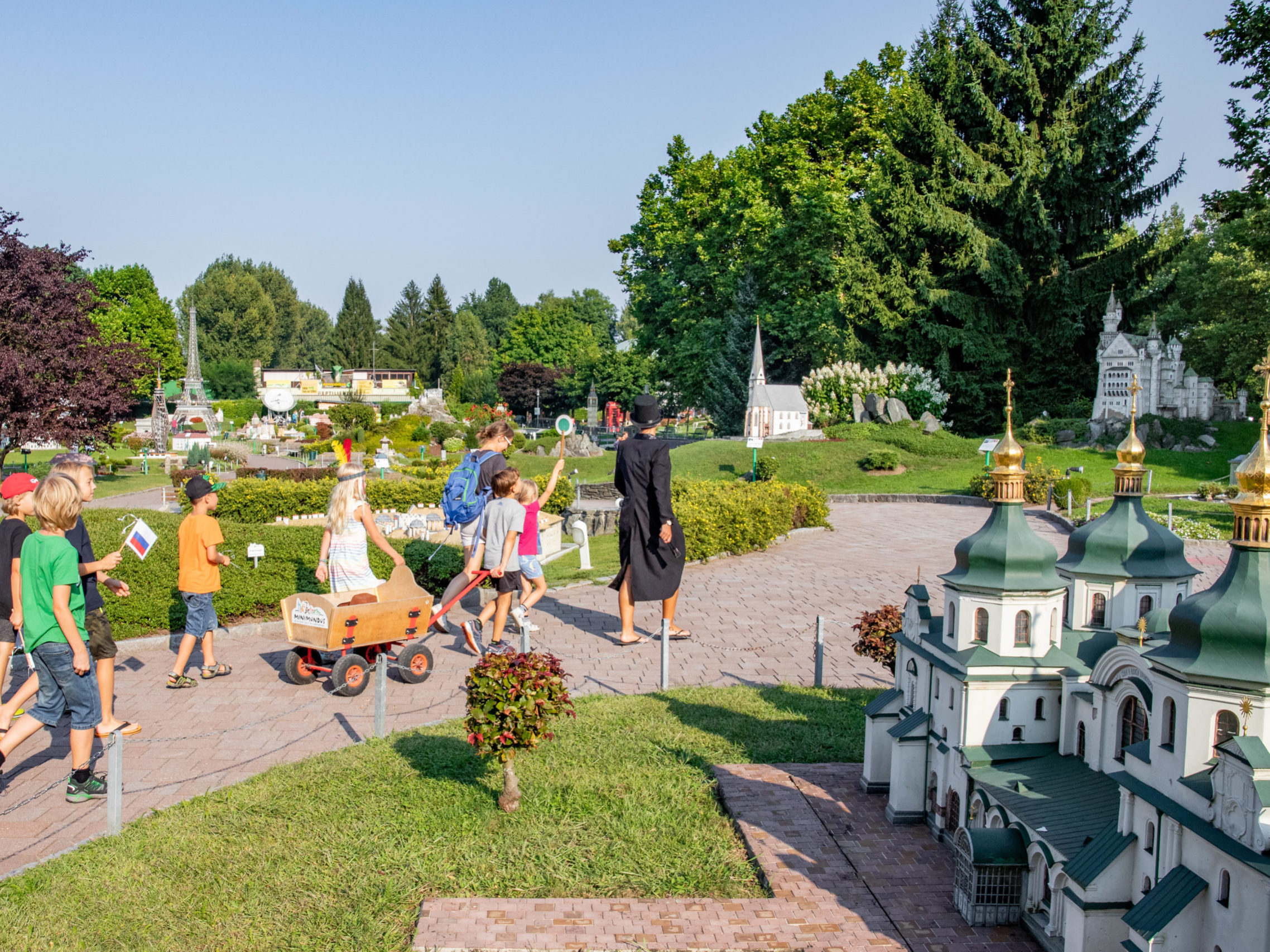 Ripercorrendo le vicende de «Il giro del mondo in 80 giorni», i bambini partono per un avventuroso viaggio in compagnia di Phileas Fogg attraverso il mondo in miniatura sul Wörthersee.