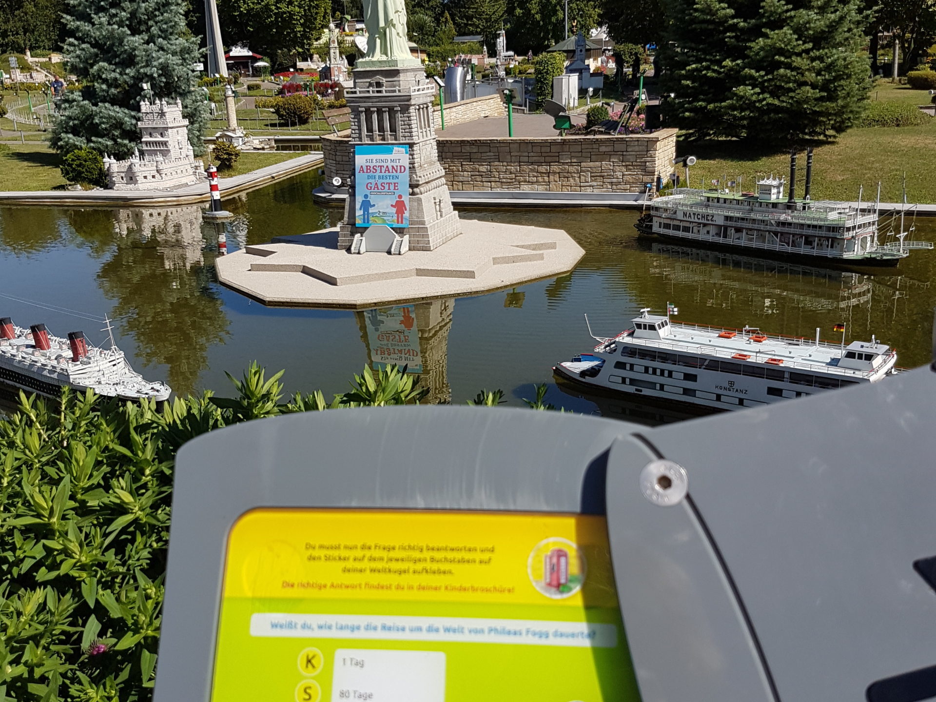 Wenn die Kleinen zu großen Entdeckern werden, wird klar, wie fesselnd diese Reise ist. Spielerisch begeben sie sich am Kindererlebnisweg auf die Spuren der Geschichte „In 80 Tagen um die Welt“ und starten eine Rätseltour, die in der roten Londoner Telefonzelle beim Eingang beginnt.