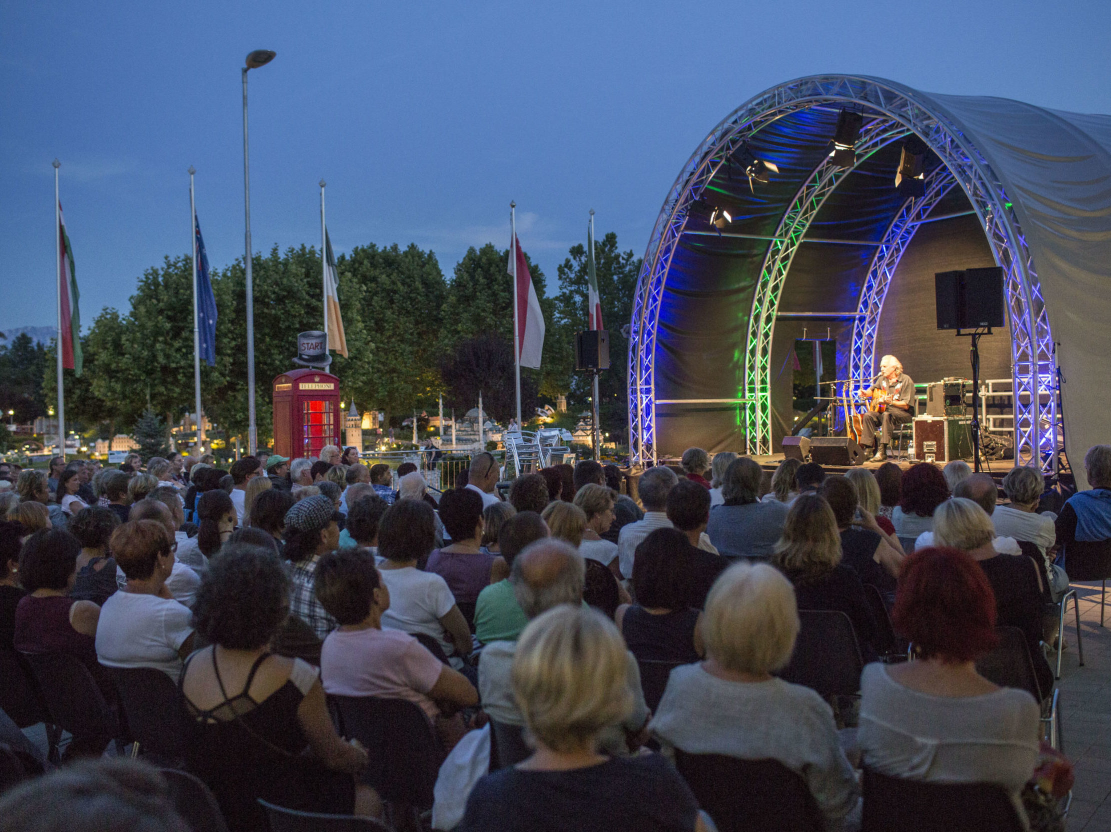 auf der Freiluft-Bühne in Minimundus auf. Geboten wird